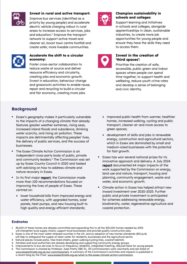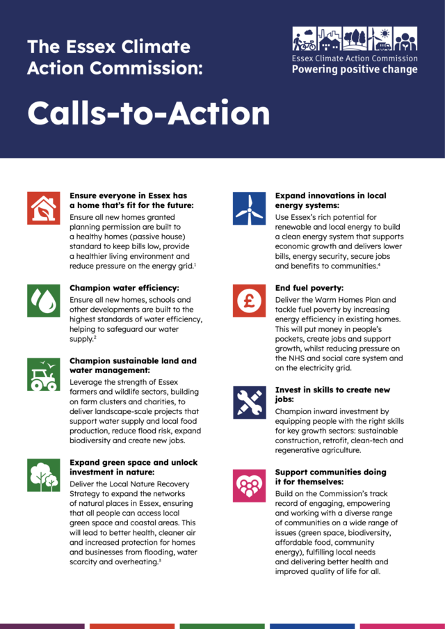 Ahead of a future mayoral election, the Essex Climate Action Commission has published twelve calls to action, which act as a series of recommendations for the new Mayor. These calls to action can be downloaded here.